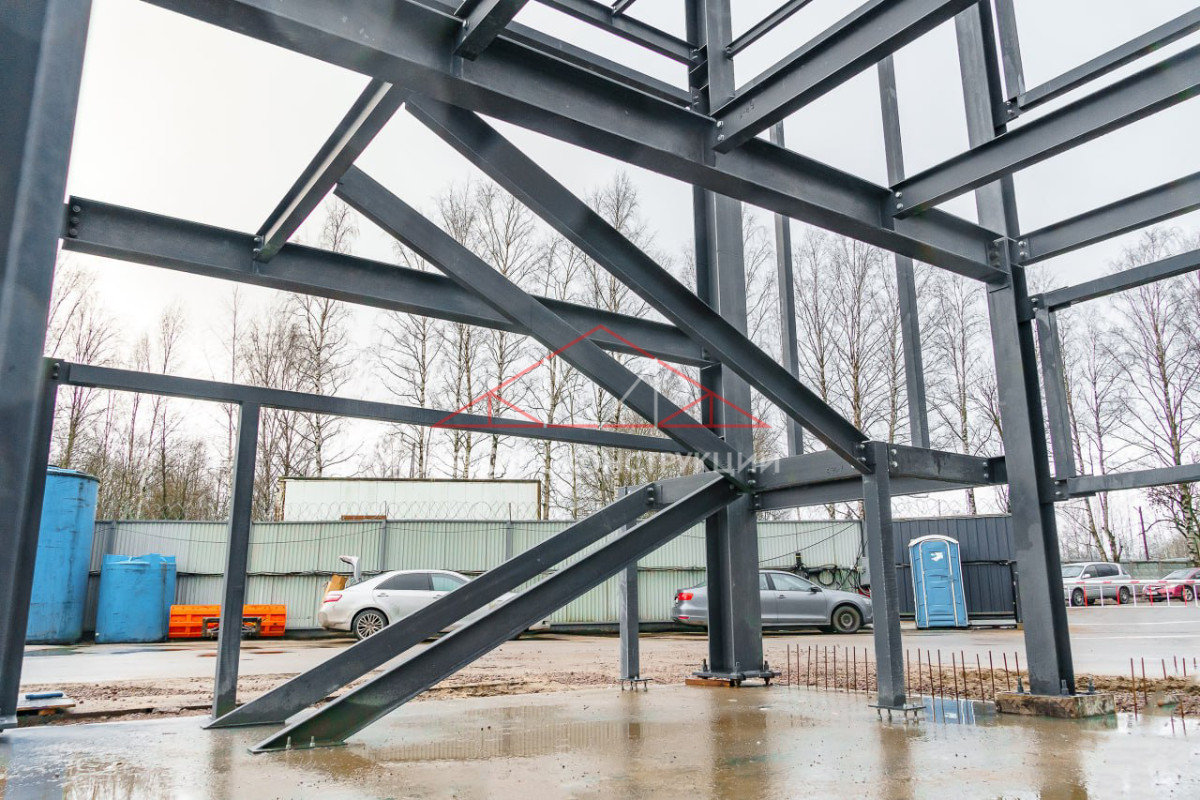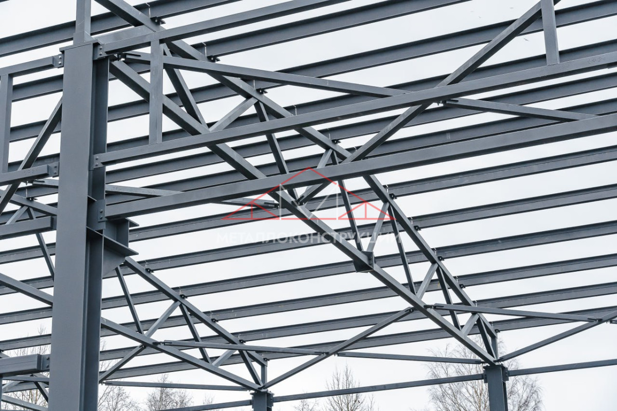Здание спроектировано по каркасной схеме с использованием стальных конструкций. Особое внимание уделено несущим элементам: металлоконструкции прошли двухступенчатую антикоррозионную обработку, которая включает в себя оцинковку и нанесение полимерного покрытия. Это гарантирует устойчивость здания к агрессивному климату региона — повышенной влажности, порывам ветра и перепадам температур.