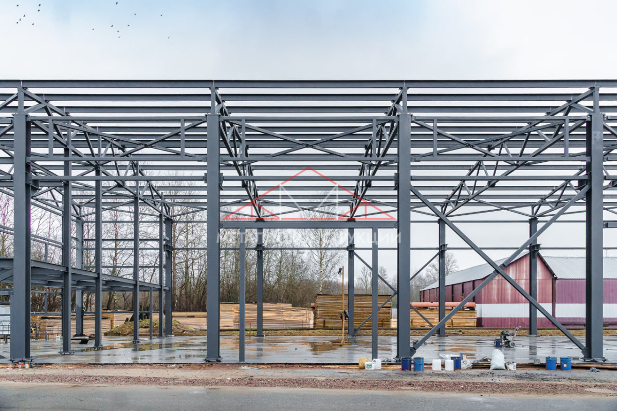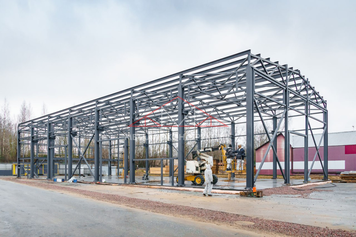 Объект соответствует требованиям пожарной, санитарной и строительной безопасности. Каркас склада передан заказчику для продолжения строительных работ.