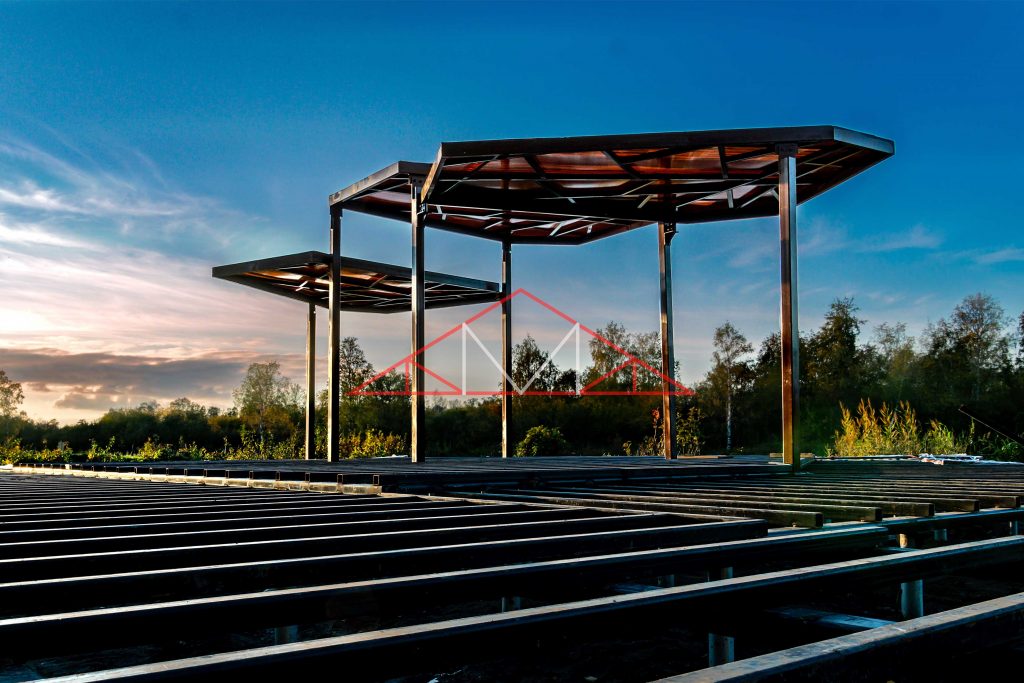 Для стационарных (всесезонных) навесов используют стальные опоры и обшивку из прочных материалов.