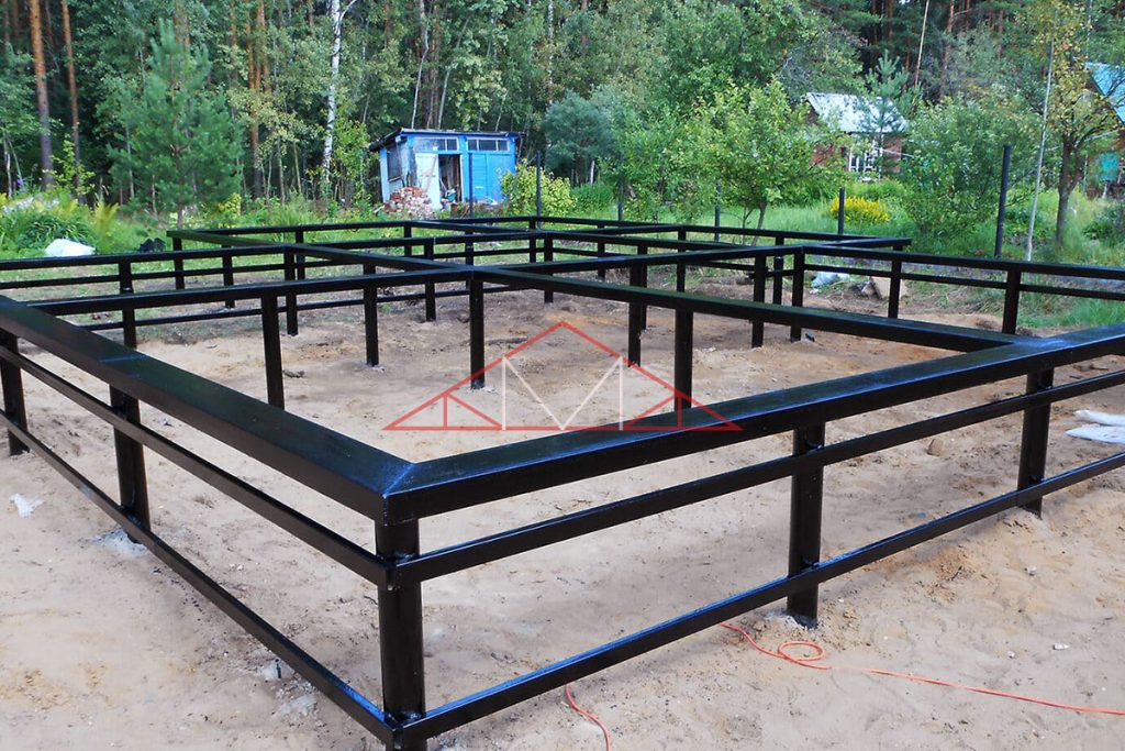 Наиболее прочным, удобным и универсальным способом организации обвязки является использование металлических конструкций. Они подойдут для обвязки свайно-винтового фундамента под легкие каркасные объекты и дома средней тяжести, возводимые на сложном рельефе с уклоном.
