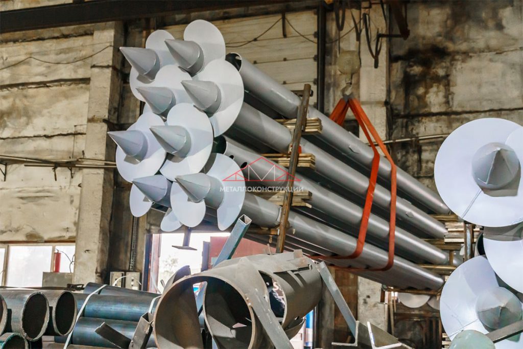 Винтовые сваи — это круглые толстостенные стальные стержни с лопастями на конце, позволяющими вкручивать сваи в грунт. Изделия погружают в грунт до несущего слоя, на который будет передаваться нагрузка. Сваи крупного диаметра углубляют механизированным методом: с помощью гидробуров, УБМ, сваекрутов.